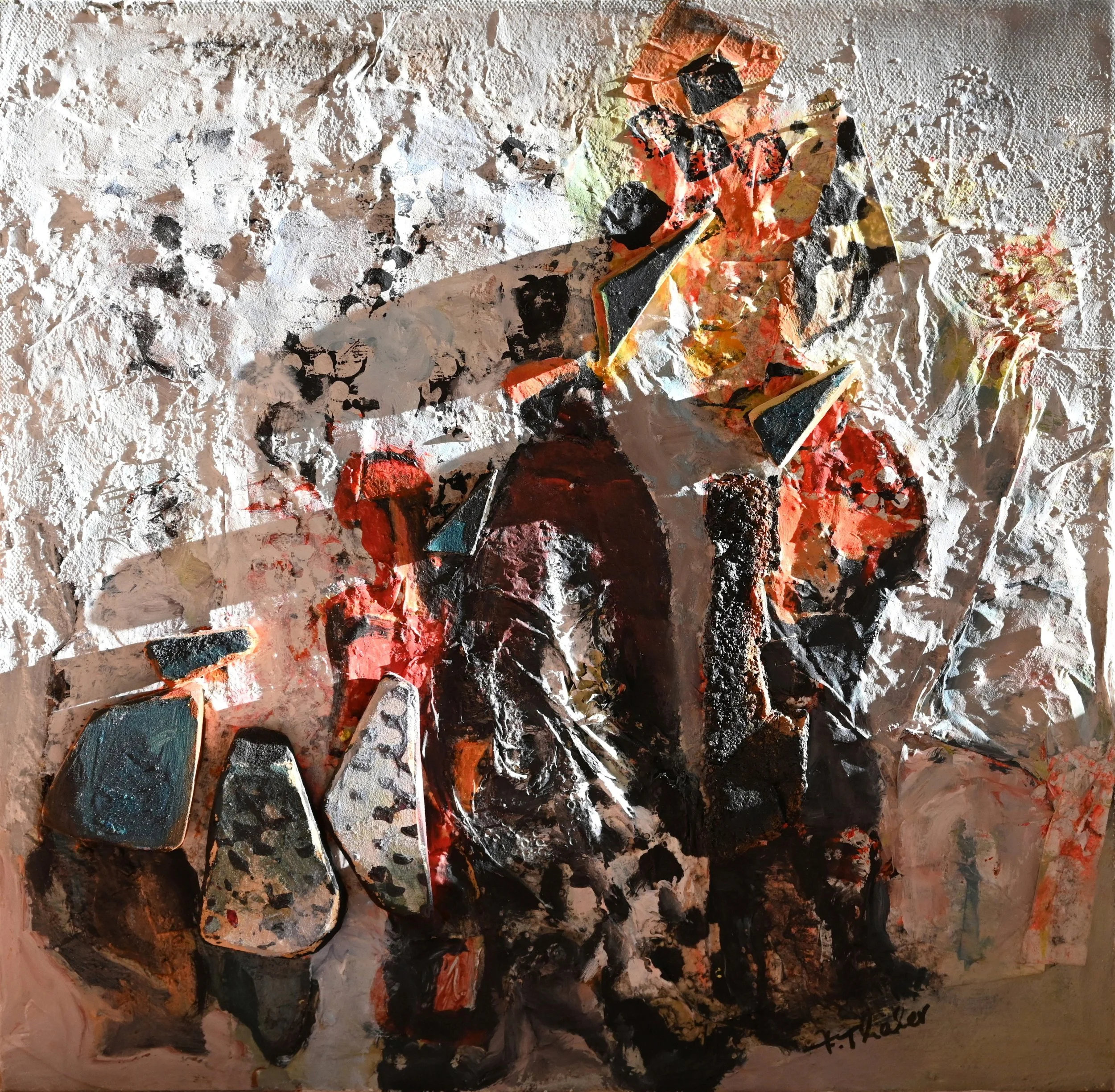 Friederike Thaler, Acryl, Reliefartige Collage, 40 x 40 cm (Nr.38)